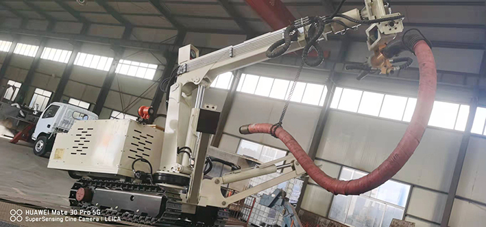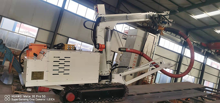 CPF-6OLY型礦用混凝土輔助噴射車(以下簡(jiǎn)稱噴漿機(jī)械手)主要用于煤礦井下煤巷、半煤巷、全巖石掘進(jìn)巷道與混凝土噴射機(jī)配套使用,代替人工噴漿作業(yè),滿足噴漿工藝要求,整機(jī)小巧、靈活、耐用、適應(yīng)能力強(qiáng),可用于大型噴漿機(jī)組無(wú)法進(jìn)入的巷道,實(shí)現(xiàn)噴漿無(wú)線操作、機(jī)械化作業(yè),減輕人工噴射勞動(dòng)強(qiáng)度大的問題。整機(jī)完全采用無(wú)線遙控操作、液壓控制,工作性能安全可靠。下車液壓系統(tǒng)負(fù)責(zé)行走、上車液壓系統(tǒng)負(fù)責(zé)噴射,上下車動(dòng)作手動(dòng)切換,防止誤操作。整機(jī)具有結(jié)構(gòu)穩(wěn)定可靠,動(dòng)作平穩(wěn),噴射范圍大,自由度多,遙控操作靈活,噴射平整度好,回彈少,噴射效率高、施工質(zhì)量好,可實(shí)現(xiàn)遠(yuǎn)程控制,操作人員可位于在可視情況好、粉塵濃度少,較為安全的位置操作,保證使用人員安全。